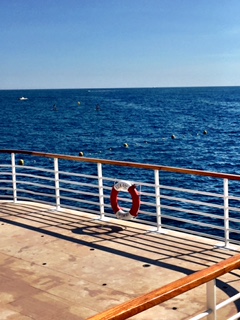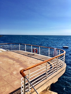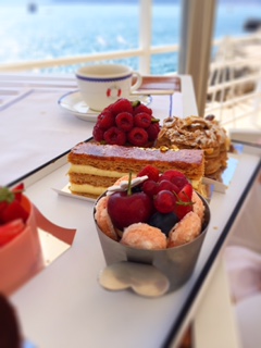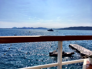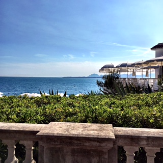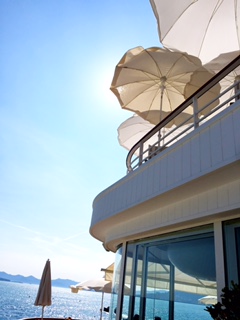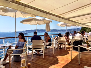 We enjoyed our lunch in the Grill - one of the hotels two restaurants. You must have a reservation to get a table, and we got a front row table viewing the bay of Juan-les-Pins and the yacht Eclipse, the world's second largest private yacht owned by Mr Abramovitch.